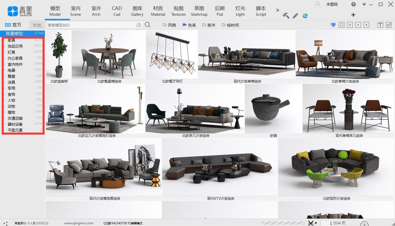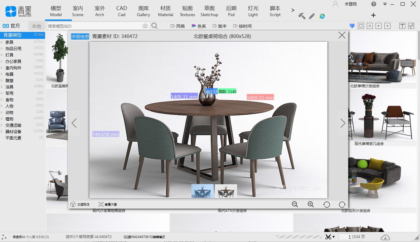 1、模型查看功能,可以查看相关的模型,如餐桌椅、沙发组合以及酒架和办公座椅等。