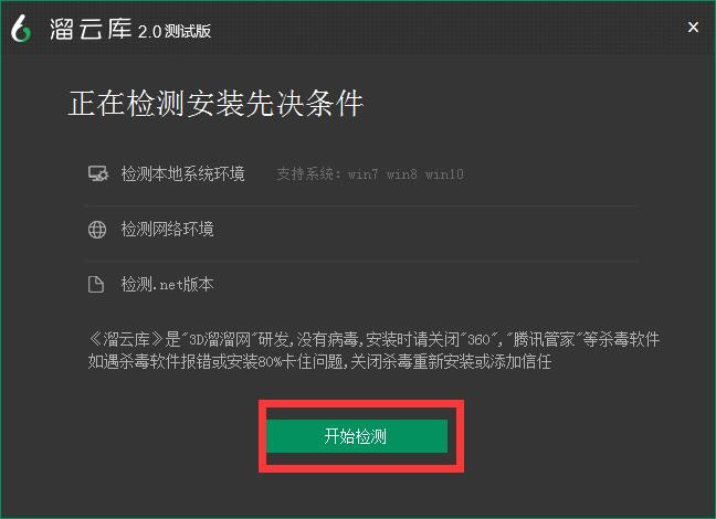 第一步、我们双击已下载成功的exe文件,提示需要检测,我们点击“开始检测”