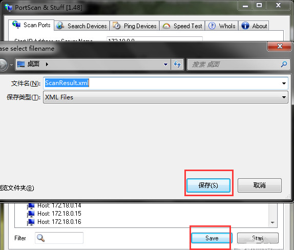 1、打开PortScan端口扫描工具,点击scan开始扫描当前网络网络上正在运行的所有设备