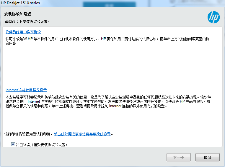 2、这时我们来到安装协议和设置界面,勾选阅读并接受协议后,点击下一步。