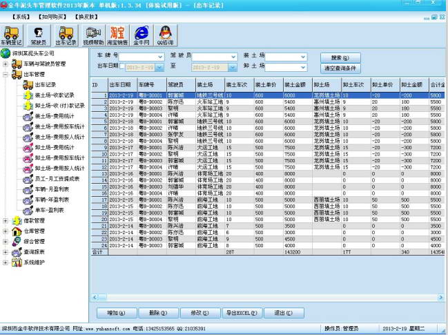 金牛得力泥头车软件,主要针对以运营泥头车业务的公司(含工程车,泥头车,运渣车,渣土车,石方车,运煤车,挖机,工地类用车,建筑类用车),对车辆的运营和营业收入的财务管理软件。 主要功能:
